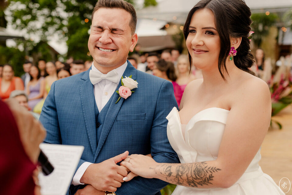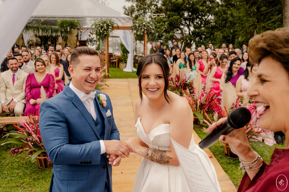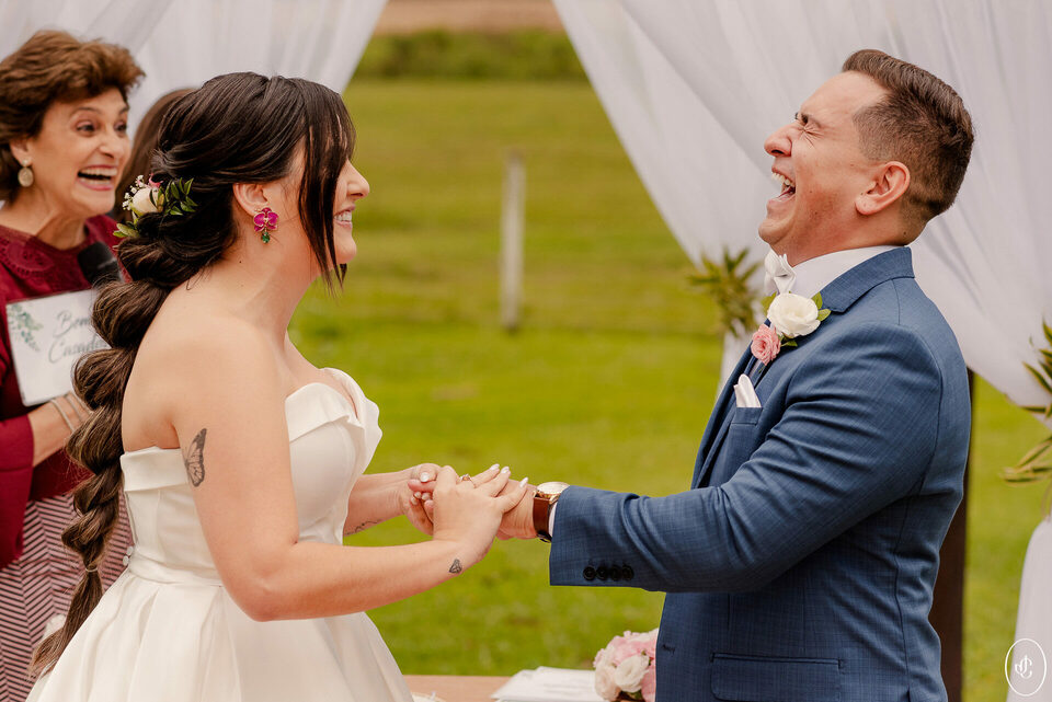 Empreendedores e donos de uma energia incrível, a cerimônia de casamento da Carol e do Ruben foi linda, emocionante e digna de uma celebração ao ar livre. E a festa? Super animada e com direito a showzão do noivo no vocal 🤘🏻