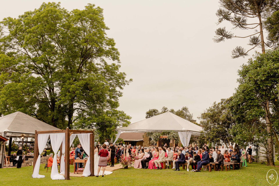 Carol e Ruben casaram na Pousada Edelweiss, localizada na Colônia Witmarsum, Palmeira - PR.