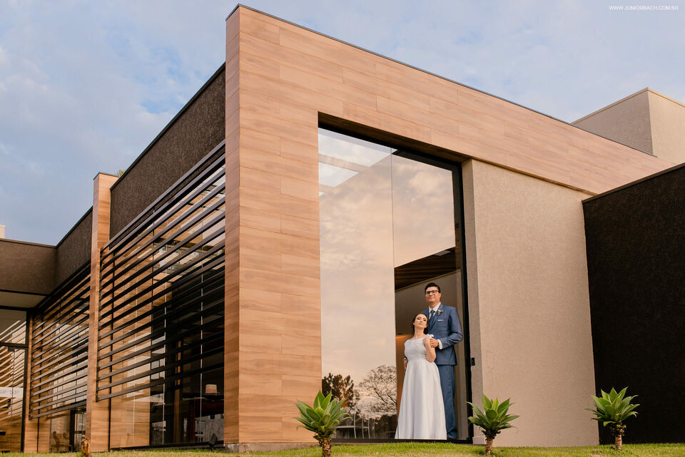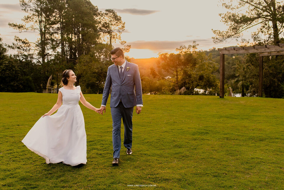 Já a recepção do casamento foi realizada no Villagio Verde Eventos, também em Ponta Grossa-PR. Um lugar aconchegante, moderno e com um pôr do sol encantador.