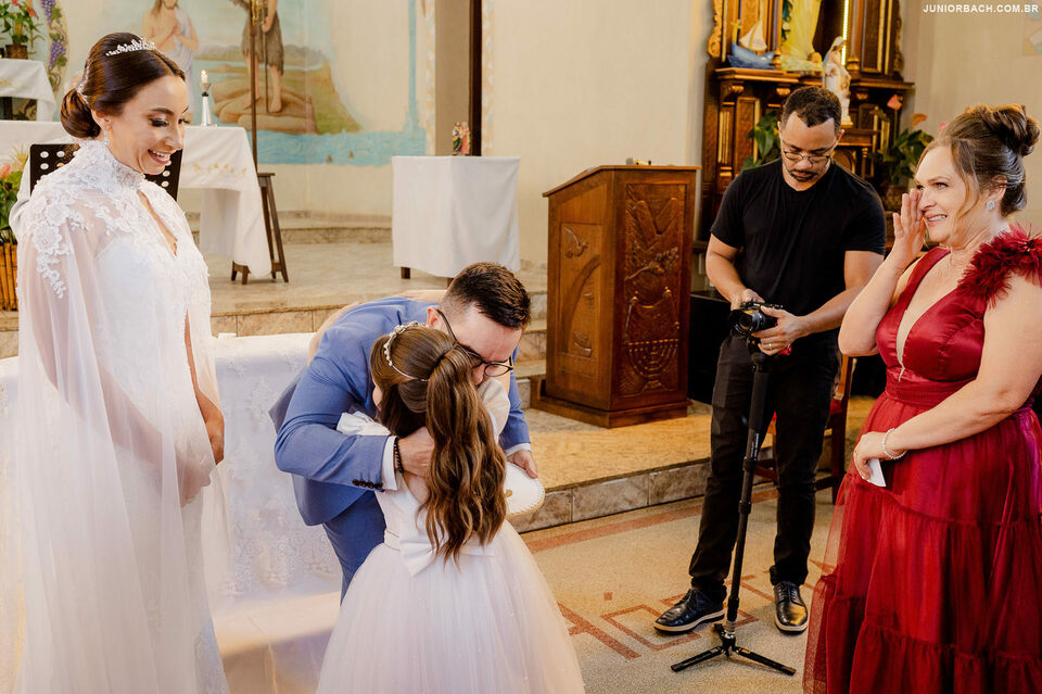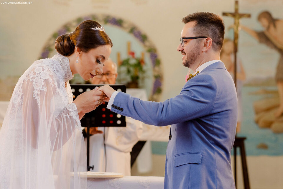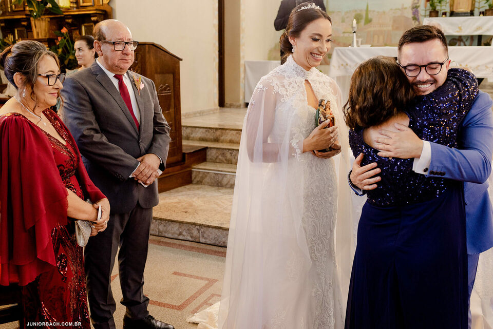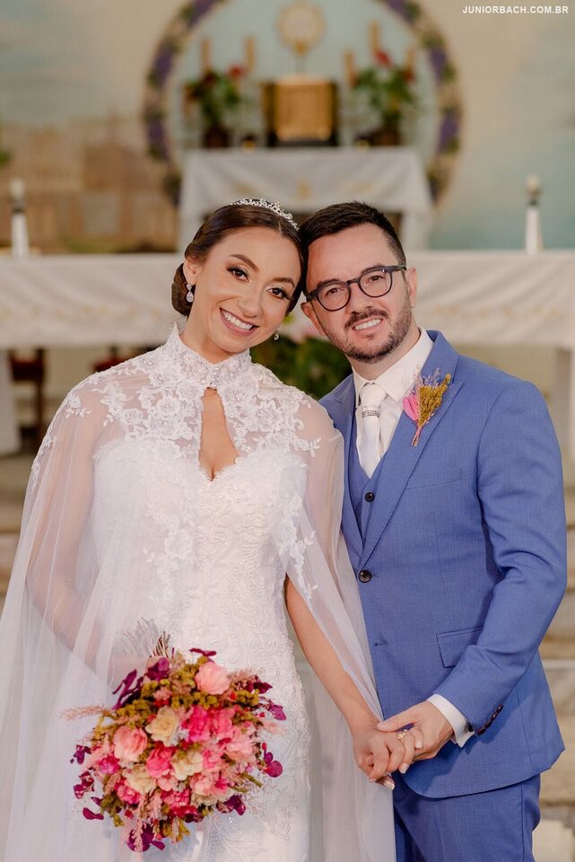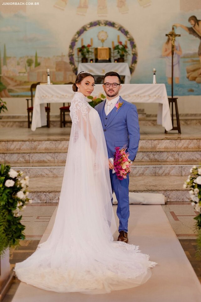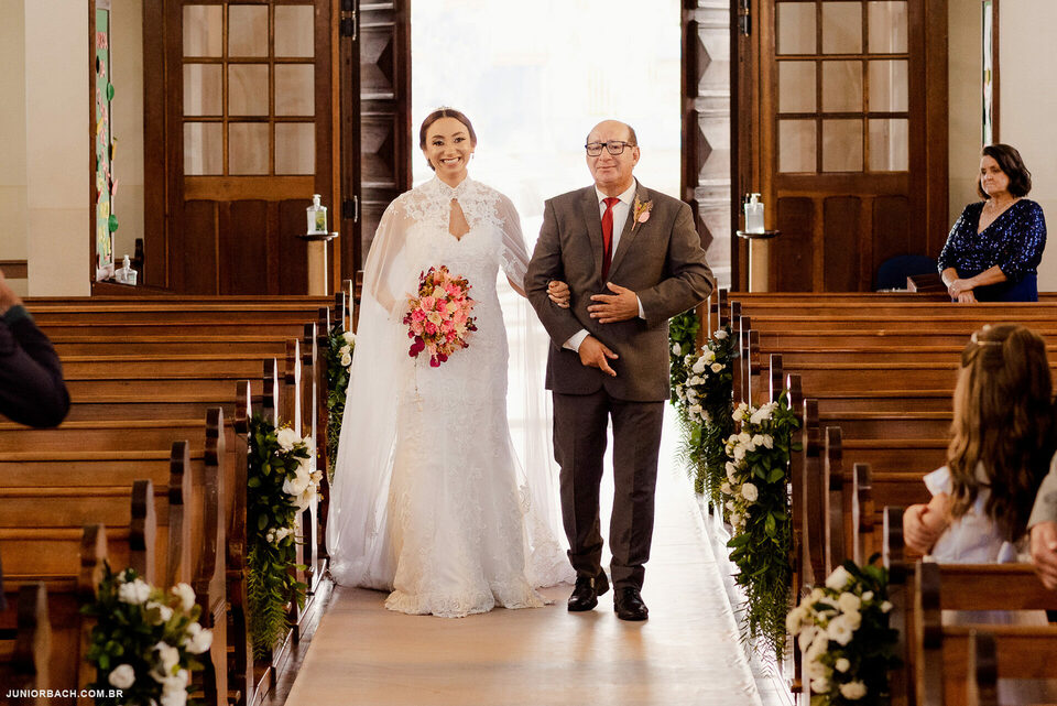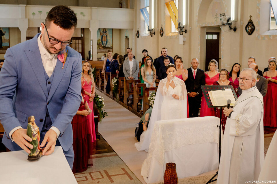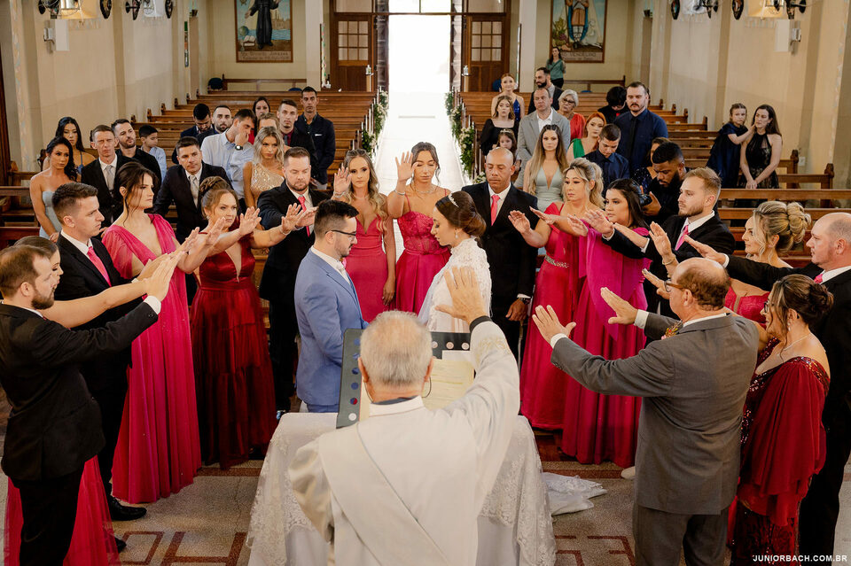 A celebração do casamento da Alessandra e do Rafael foi realizada na Igreja Espírito Santo em Ponta Grossa - PR. Igreja na qual o casal participa e tem grande carinho.