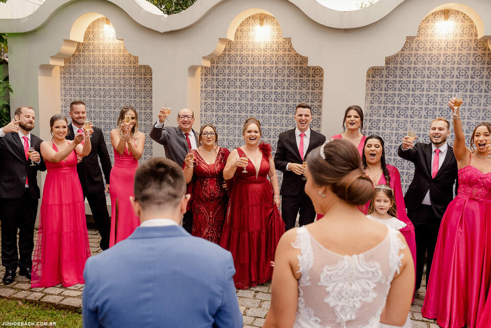 O casamento foi pensado para que o casal pudesse aproveitar ao máximo esse dia lindo junto das pessoas que mais amam. Ou seja, algo mais intimista. O que não quer dizer que a festa não foi grande! Até porque, se tem um assunto que essa galerinha domina, é saber fazer uma boa festa.