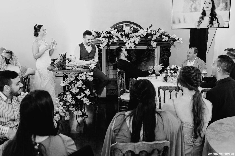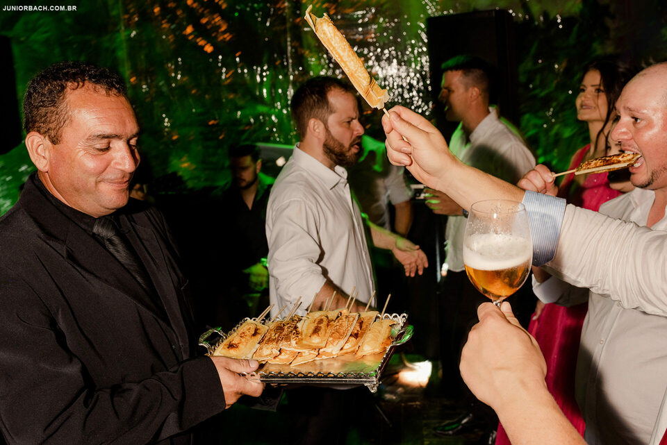Para comemorar, logo na sequência, a recepção aconteceu no Espaço Origem Noivas. Um local lindo e que combinou demais com a ideia dos noivos.