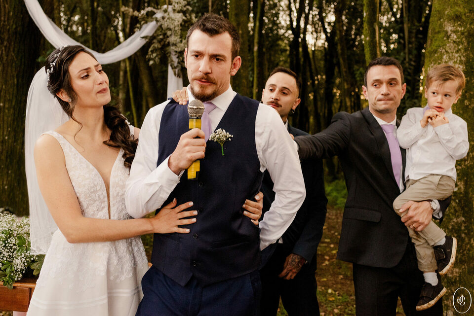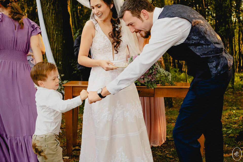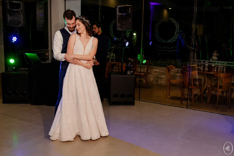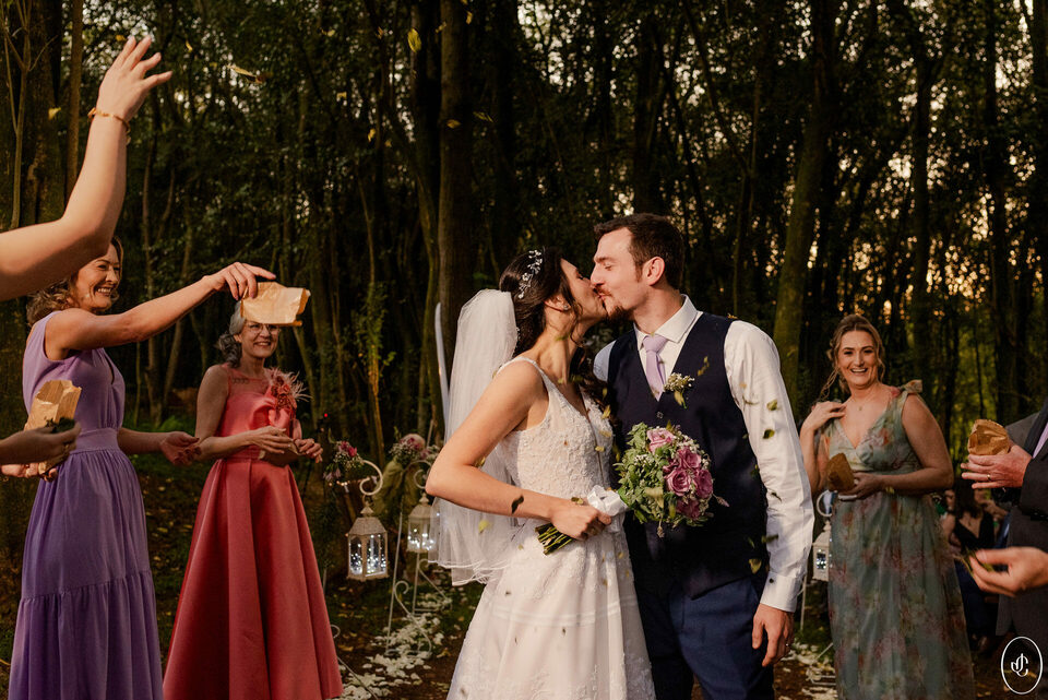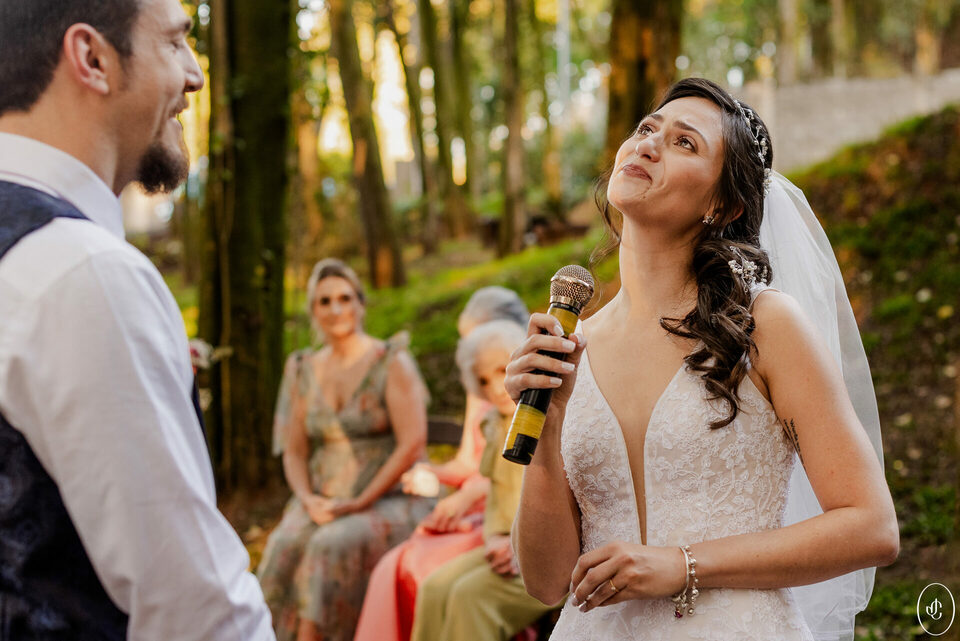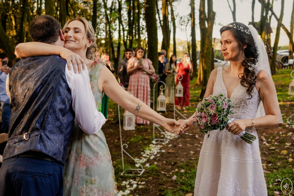 A Jacque e o Nelson realizaram sua cerimônia de casamento em um fim de tarde lindo em meio às árvores, no Clube Ponta Lagoa, na cidade de Ponta Grossa-PR.
